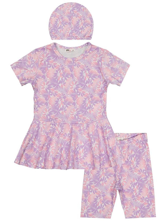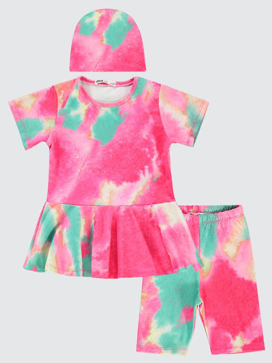 Civil girls batik desen haşema 2-12 yaş mayo set - pembe