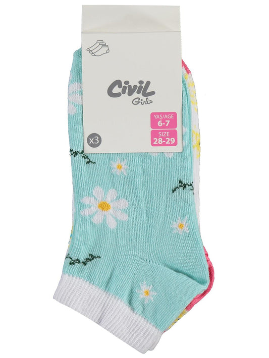 Civil girls papatya 3'lü 2-12 yaş kız patik çorap