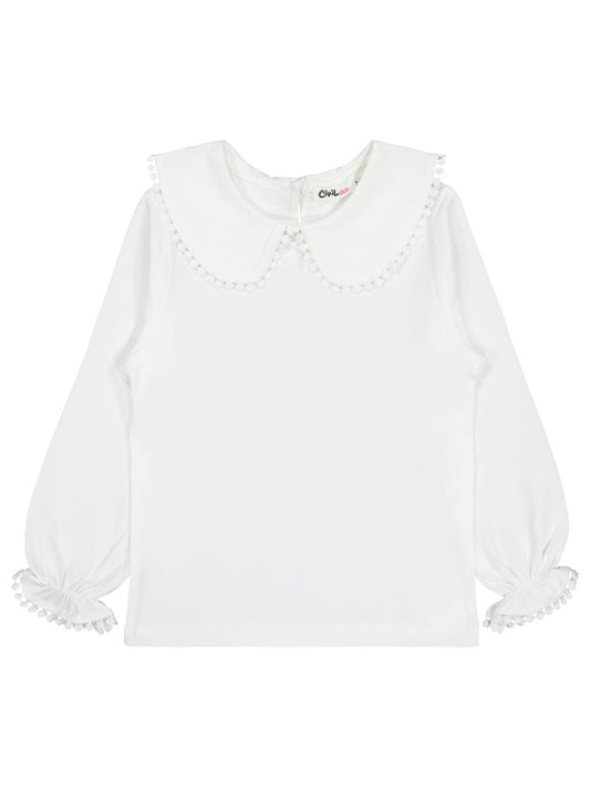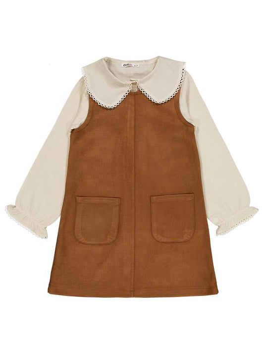 • Civil girls yakası pomponlu 2-5 yaş elbise - bej