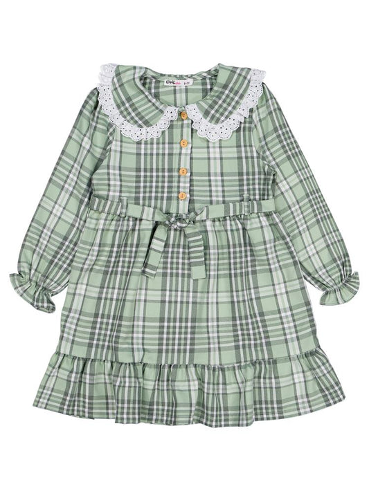 • Civil girls ekose desenli 6-9 yaş elbise - yeşil