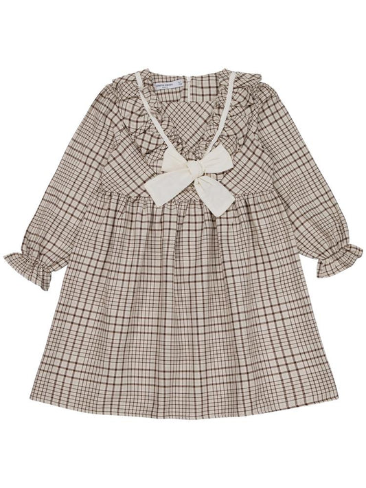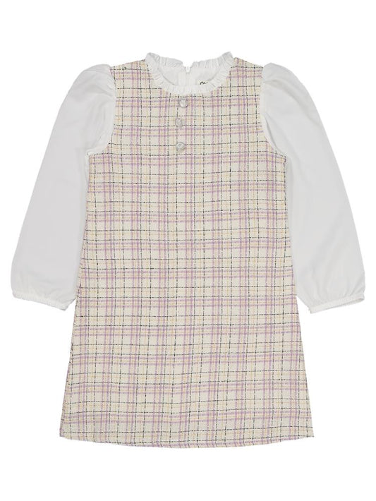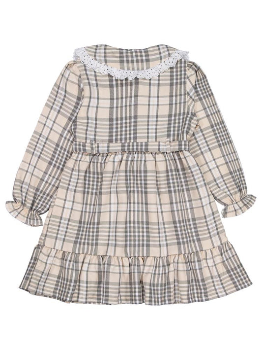 • Civil girls ekose desenli 6-9 yaş elbise - bej