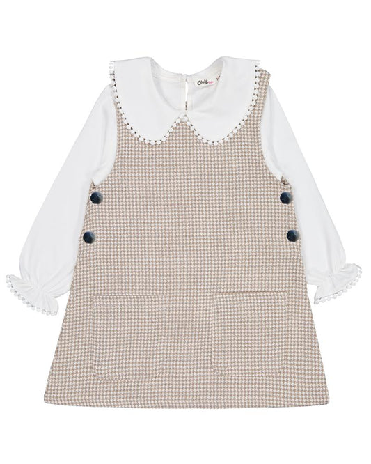 • Civil girls ekose desenli 2-5 yaş elbise - bej