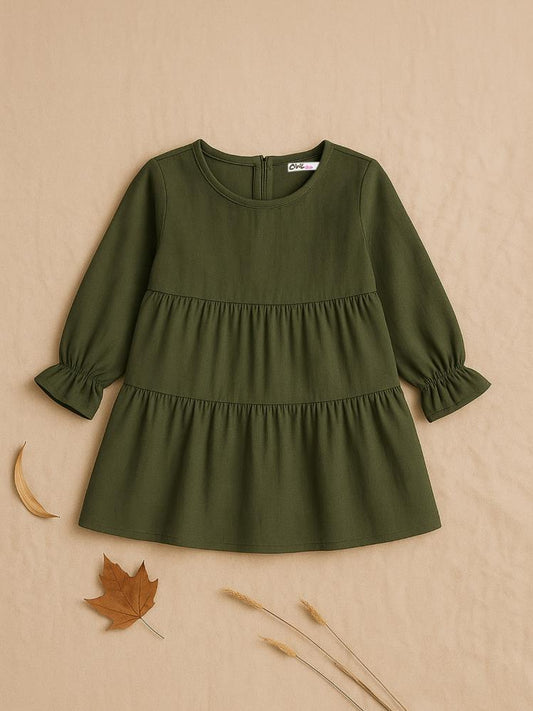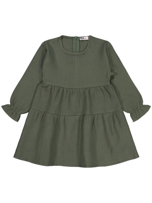 Civil girls kol fırfırlı 6-9 yaş elbise - yeşil