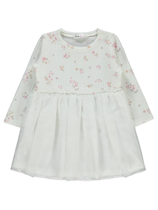 Civil girls çiçek baskılı 2-5 yaş elbise - ekru