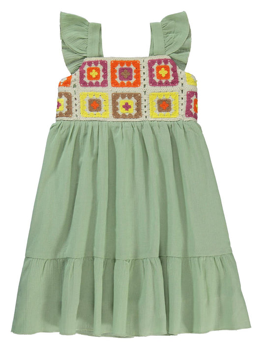 Civil girls roba desenli 6-9 yaş elbise - yeşil