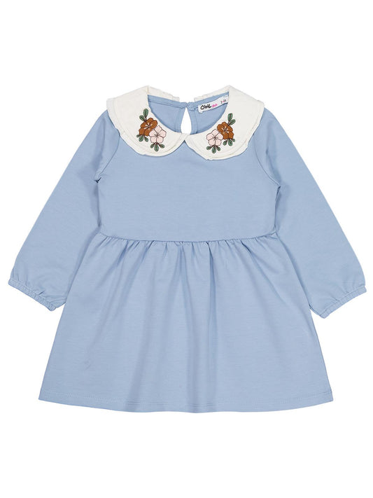 Civil girls yakası nakışlı 2-5 yaş elbise - mavi