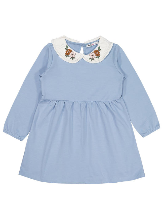 Civil girls yakası nakışlı 6-9 yaş elbise - mavi