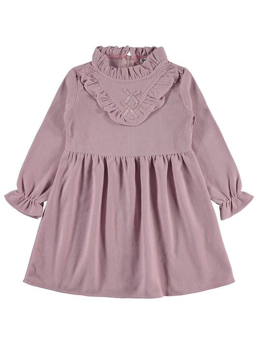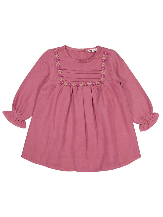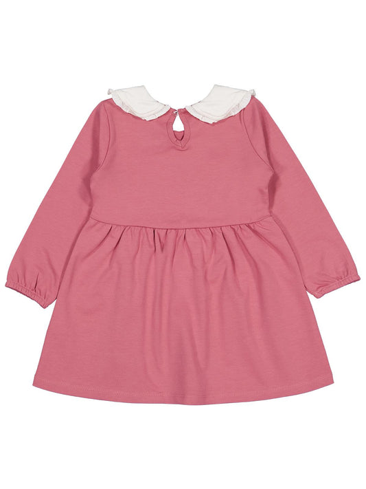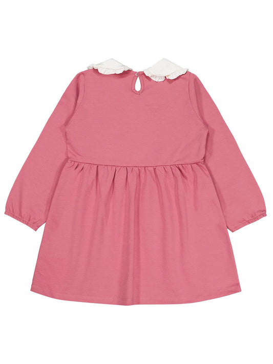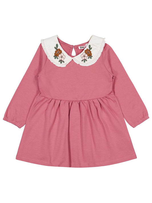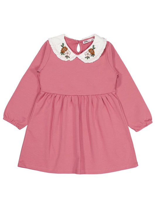 Civil girls yakası nakışlı 2-5 yaş elbise - pembe
