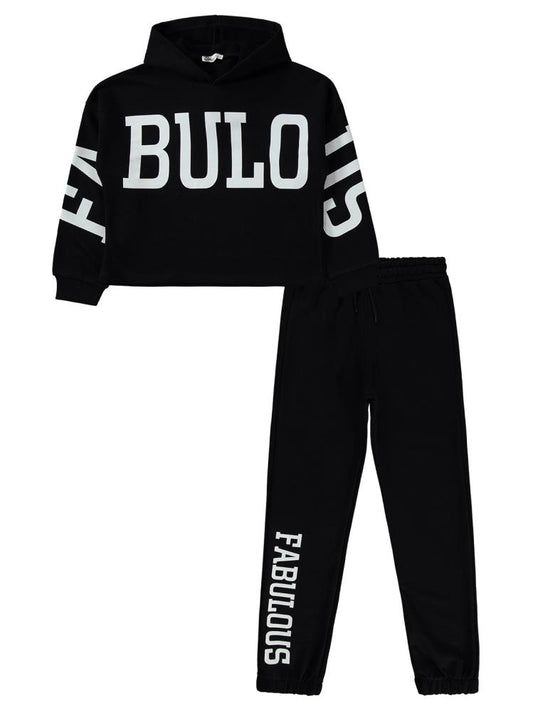 Civil girls fabuloos baskılı 10-13 yaş eşofman takımı - siyah