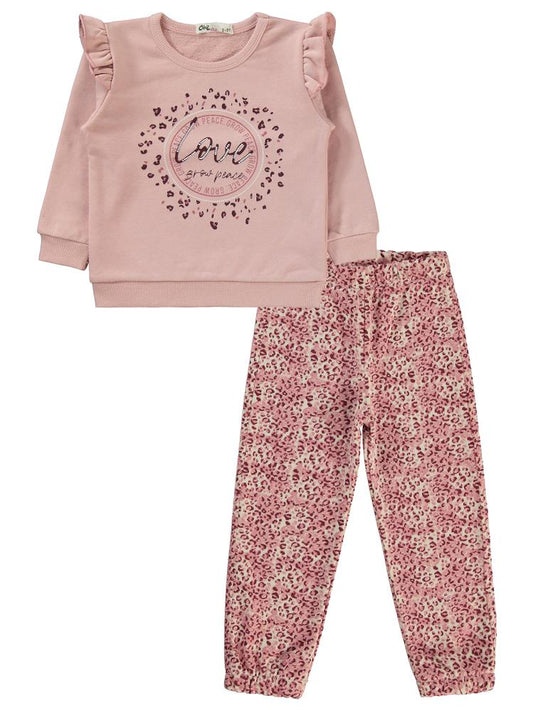 Civil girls love baskılı 2-5 yaş eşofman takımı - pudra