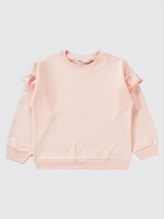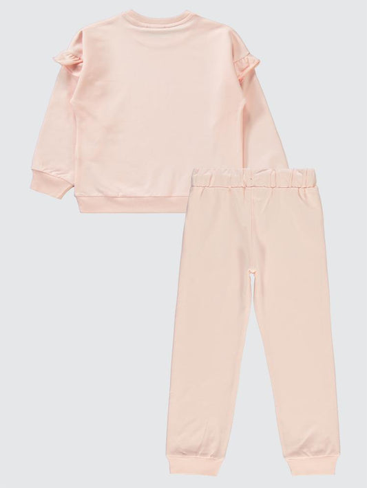 Civil girls kolu fırfırlı 10-13 yaş eşofman takımı - pudra