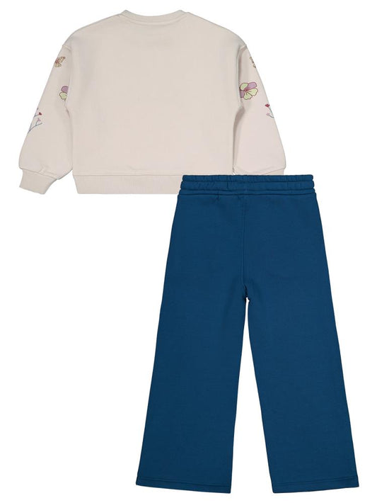 Civil girls kolu fırfırlı 6-9 yaş eşofman takımı - fil dişi