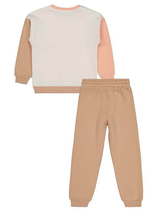 Civil girls alev baskılı 2-5 yaş eşofman takımı - ekru