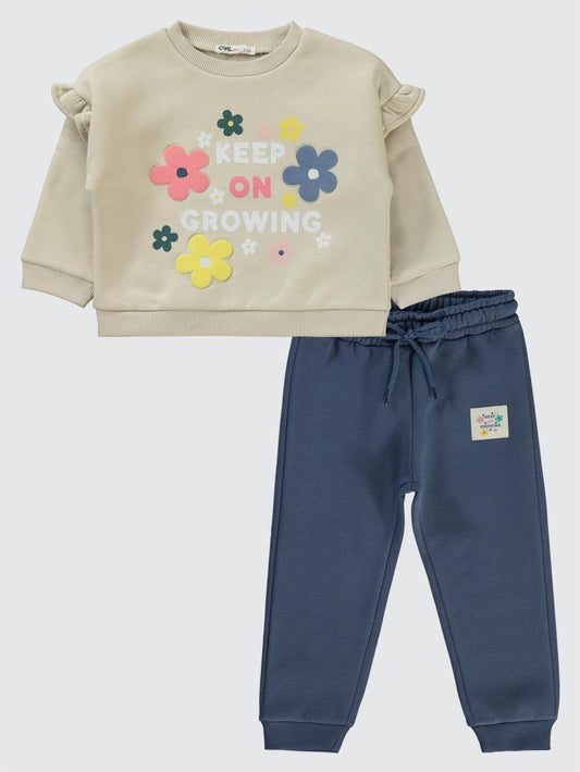 Civil girls keep growing baskılı 2-5 yaş eşofman takımı - bej