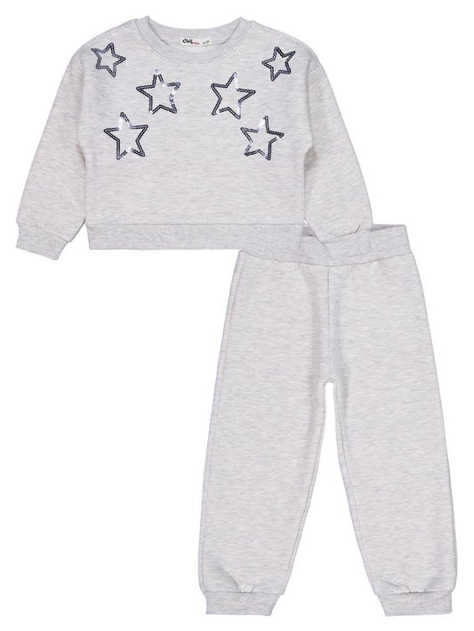 Civil girls shine nakışlı garnili 6-9 yaş eşofman takımı - gri