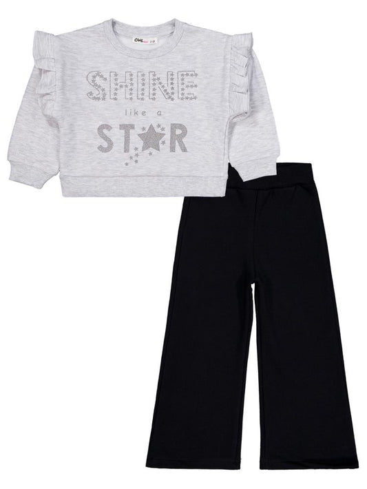 • Civil girls shıne star baskılı 2-5 yaş eşofman takımı - gri