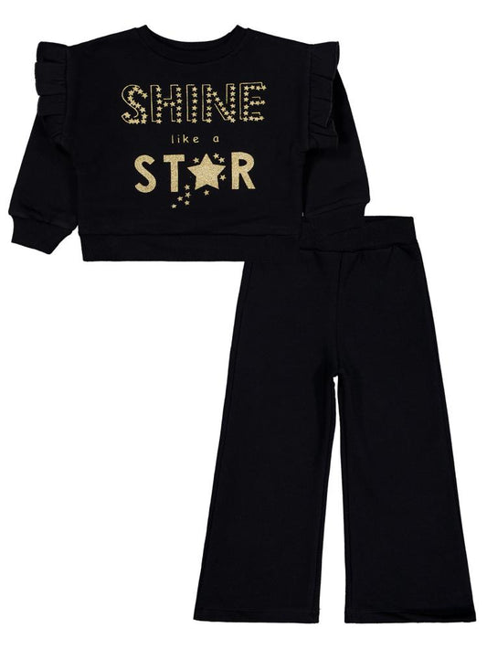 • Civil girls shıne star baskılı 2-5 yaş eşofman takımı - siyah