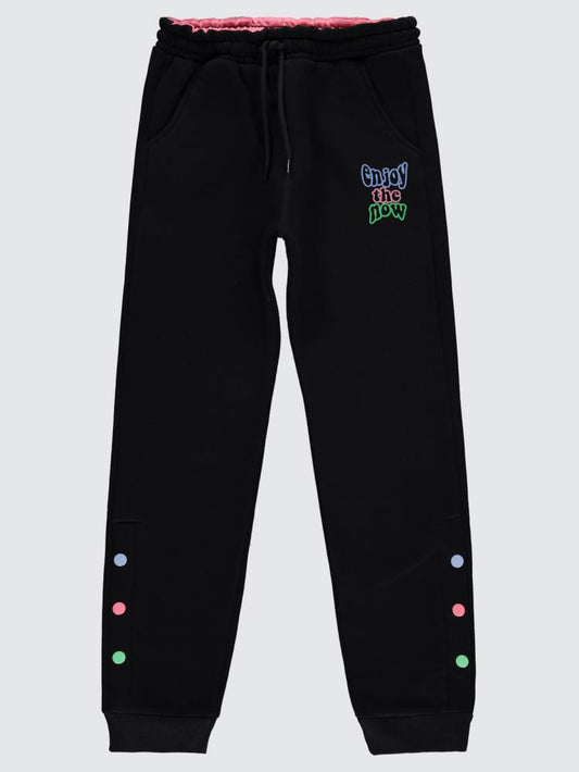 Civil girls paçası çıtçıtlı 10-13 yaş eşofman altı - siyah