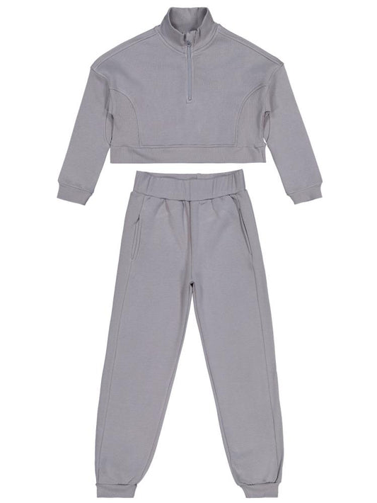 • Civil girls fermuar detaylı 10-13 yaş eşofman takımı - gri