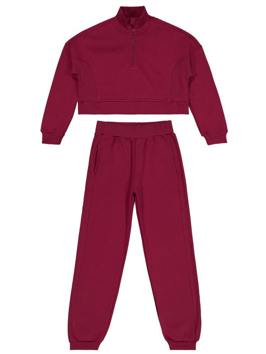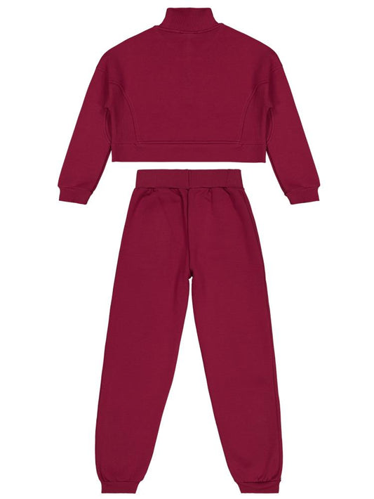 • Civil girls fermuar detaylı 10-13 yaş eşofman takımı - bordo