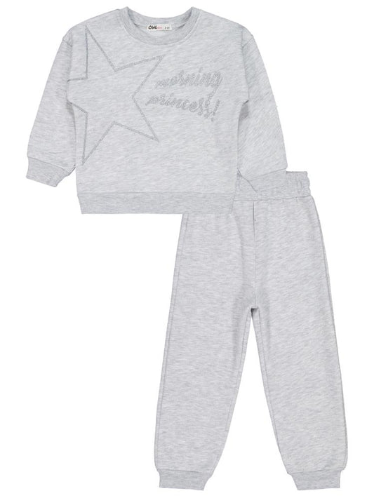 • Civil girls yıldız baskılı 2-5 yaş eşofman takımı - gri