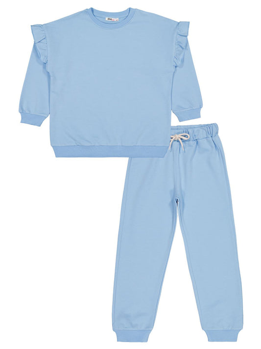 Civil girls kolu fırfırlı 6-9 yaş eşofman takımı - mavi