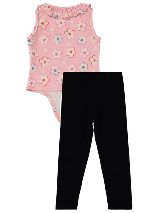 Civil girls çiçek baskılı 2-5 yaş takım - pembe