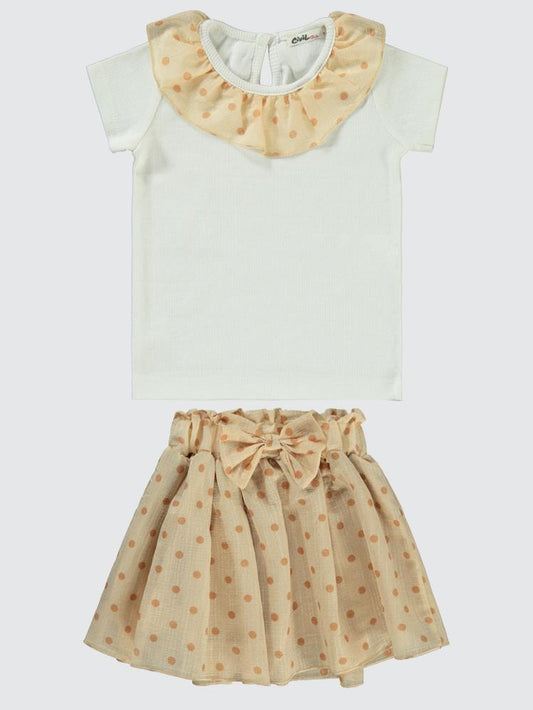 Civil girls puan baskılı 2-5 yaş takım - ekru