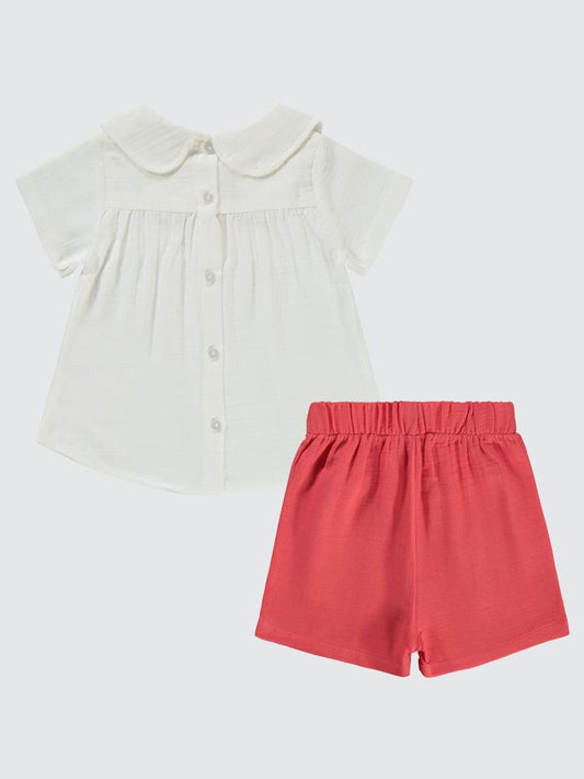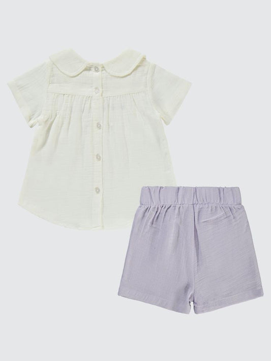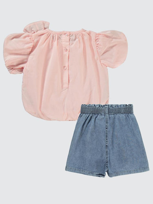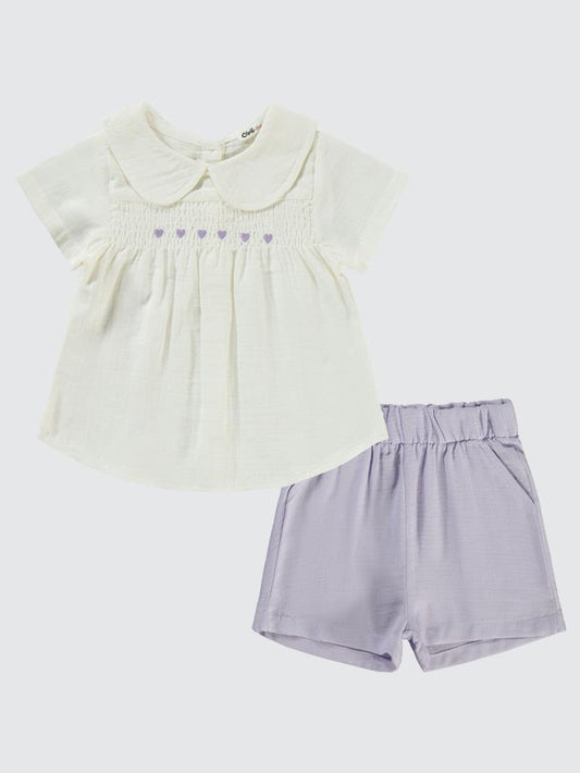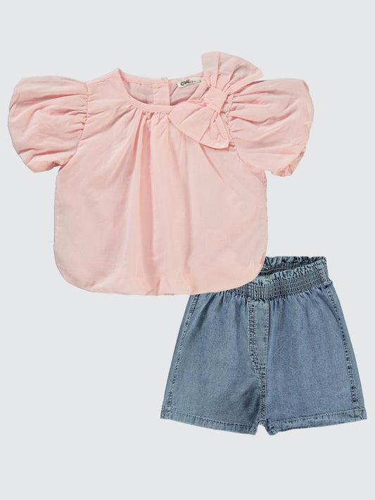 Cocoland çiçek desenli şortlu 2-5 yaş takım - pudra