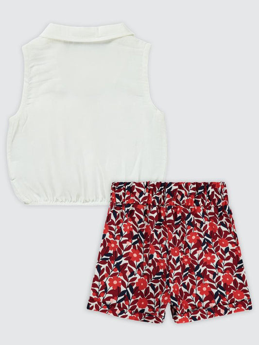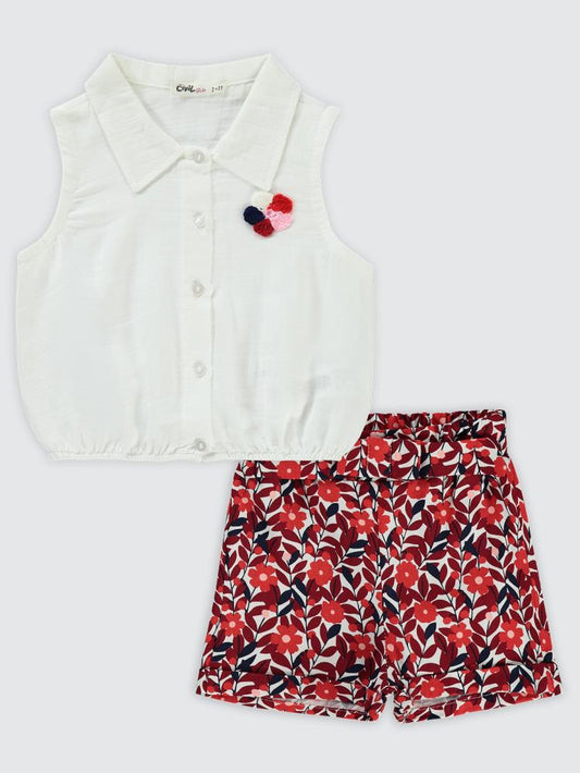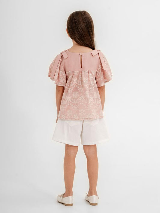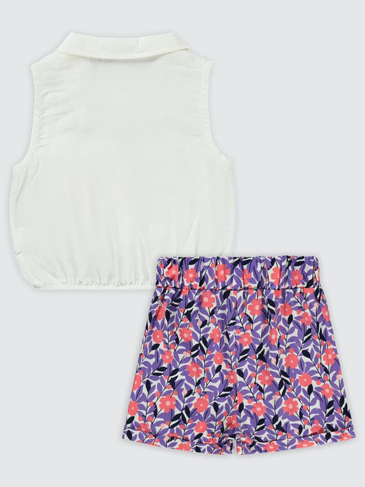 Cocoland çiçek desenli şortlu 6-9 yaş takım - pudra