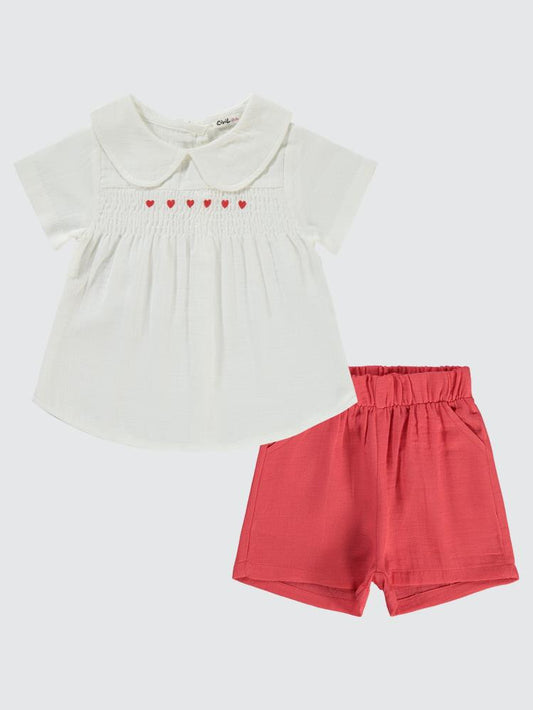 Civil girls kalp nakışlı 2-5 yaş takım - kırmızı