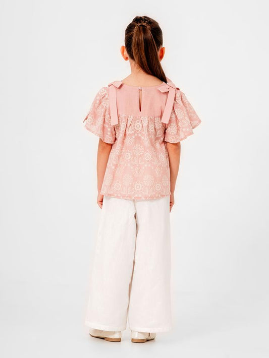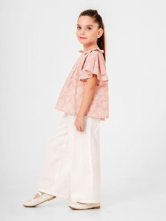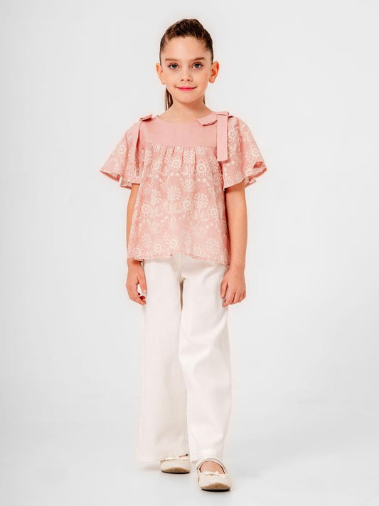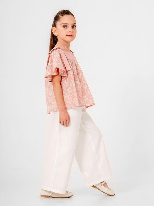Cocoland çiçek desenli pantolonlu 2-5 yaş takım - pudra