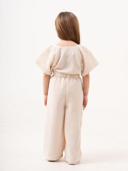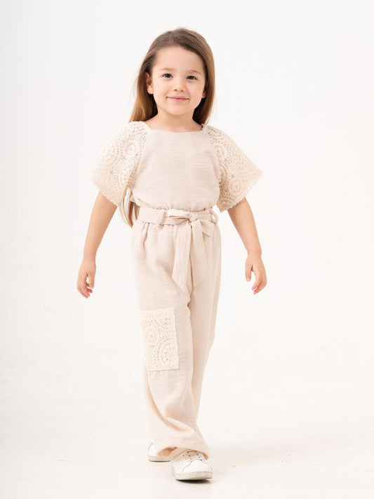 Civil girls örgü desenli 6-9 yaş takım - bej
