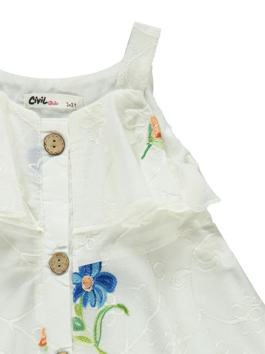 Civil girls çiçek nakışlı 2-5 yaş elbise - ekru