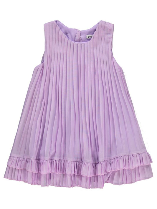 Civil girls yakası fırfırlı keten 2-5 yaş elbise - lila