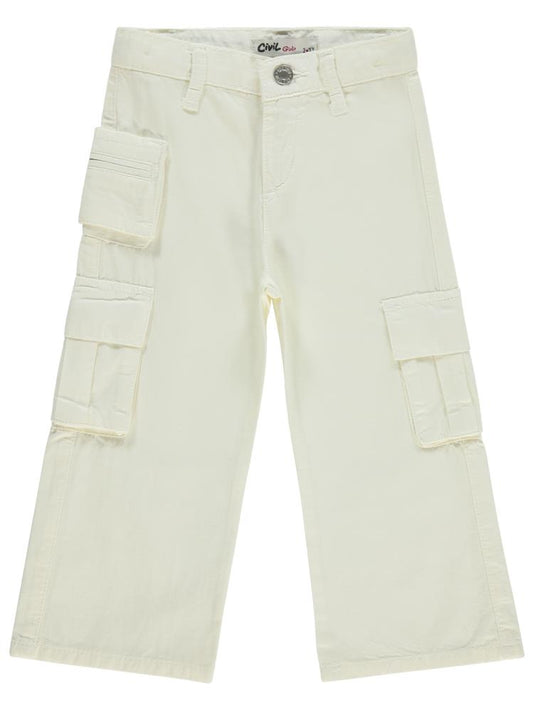 Civil girls üç cepli kargo 6-9 yaş pantolon - beyaz