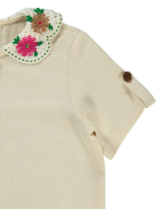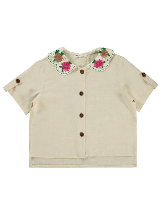 Civil girls yaka aksesuarlı 10-13 yaş gömlek - ekru