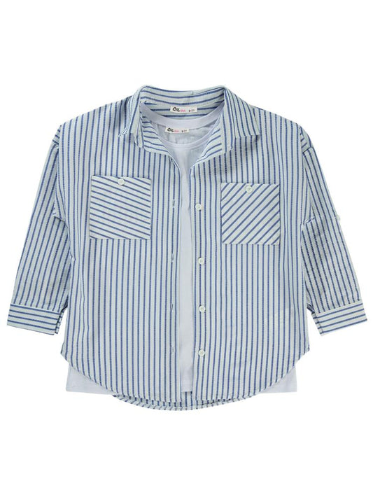 Civil girls çizgili 6-9 yaş gömlek - mavi