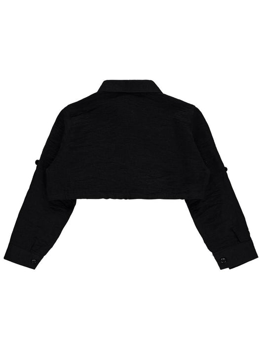 Civil girls önü bağlamalı deri 10-13 yaş gömlek - siyah