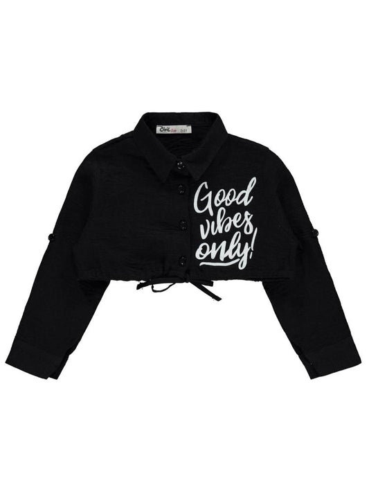 Civil girls good vibes only baskılı 2-5 yaş gömlek - siyah