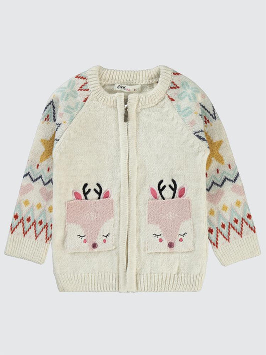 Civil girls geyik nakışlı 2-5 yaş hırka - ekru