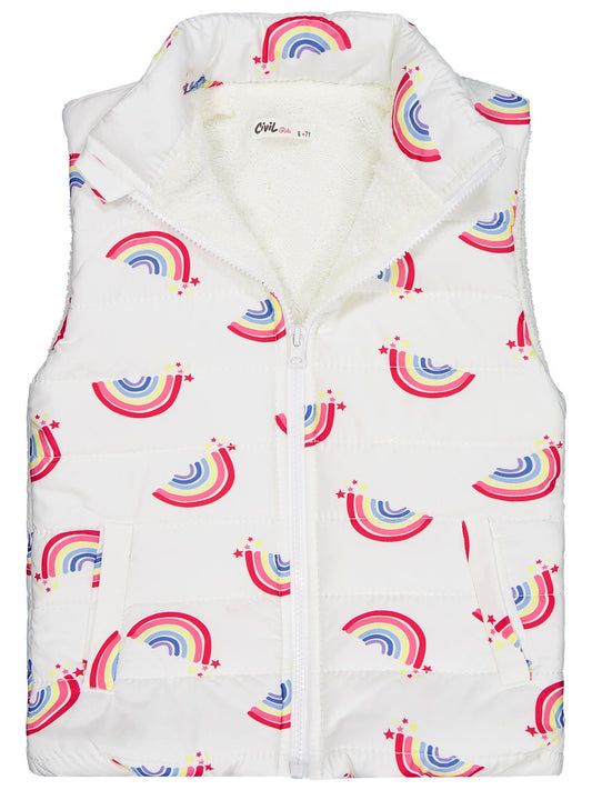Civil girls rainbow baskılı 2-5 yaş yelek - ekru
