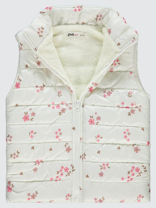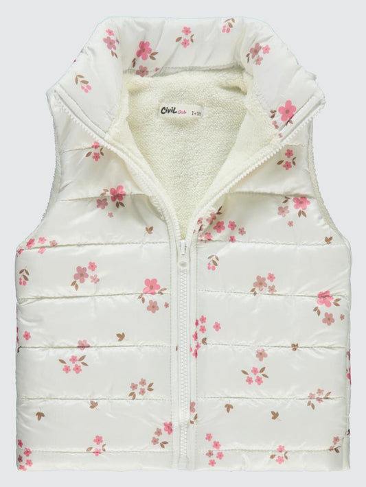 Civil girls velsoftlu çiçek baskılı 6-9 yaş yelek - beyaz