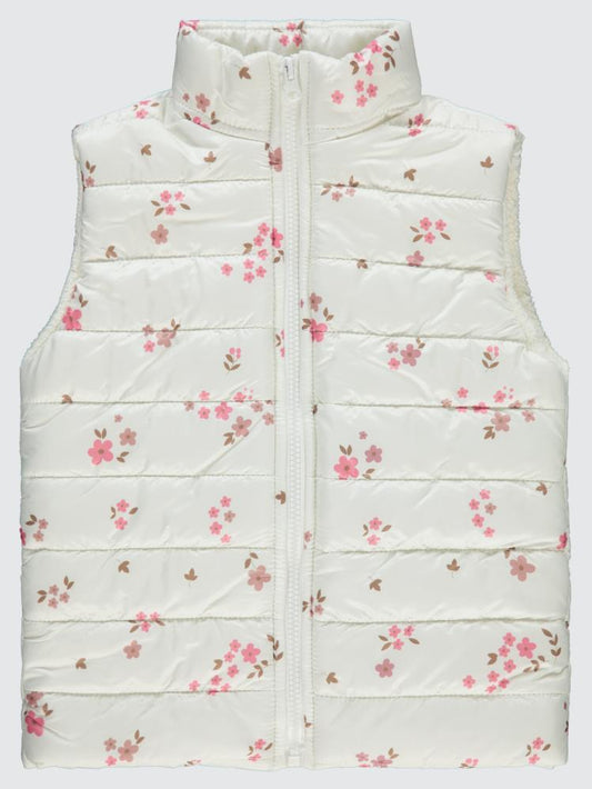 Civil girls velsoftlu çiçek baskılı 2-5 yaş yelek - beyaz