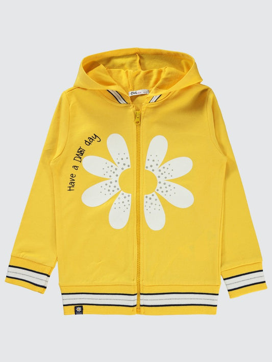 Civil girls papatya baskılı 6-9 yaş hırka - sarı