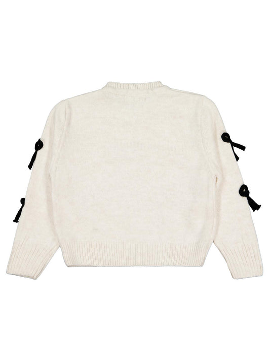 Civil girls fiyonk aksesuarlı 6-9 yaş kazak - ekru