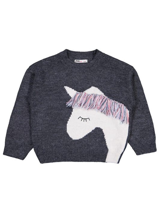 Civil girls unicıorn desenli 2-5 yaş kazak - gri