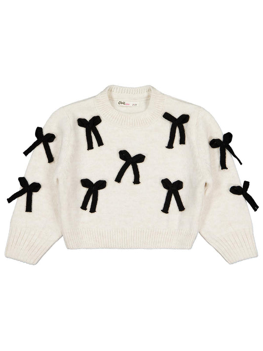 Civil girls fiyonk aksesuarlı 2-5 yaş kazak - ekru