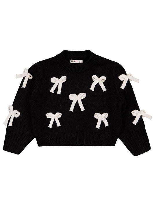 Civil girls fiyonk aksesuarlı 6-9 yaş kazak - siyah