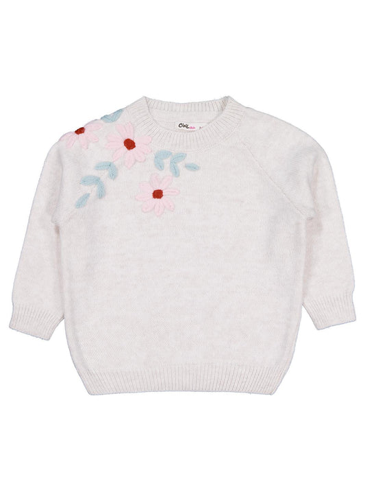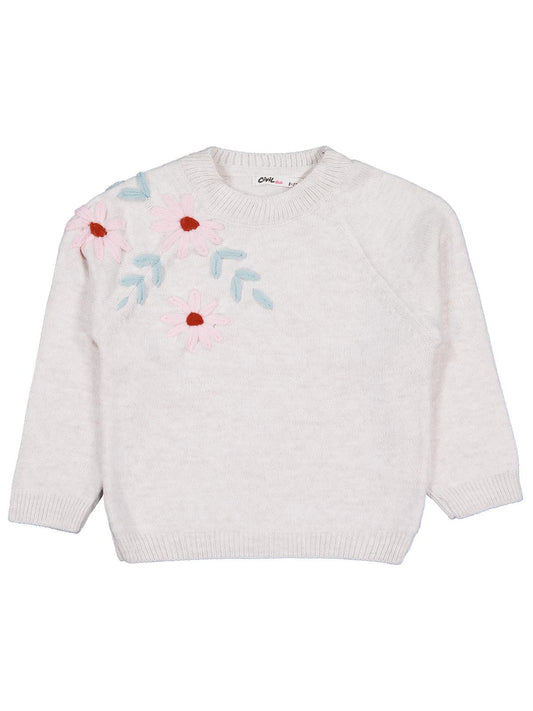 Civil girls çiçek nakışlı 2-5 yaş kazak - bej